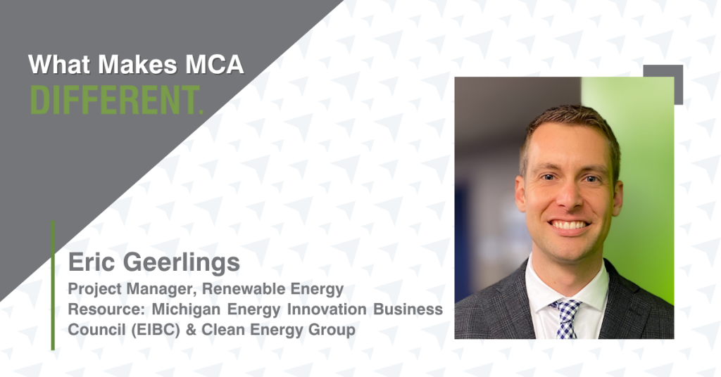 Eric subscribes to both the Michigan Energy Innovation Business Council (EIBC) and Clean Energy Group’s weekly newsletters to stay up to date on advanced energy sector news, which includes everything from small-scale micro-grids to utility-scale Battery Energy Storage Systems (BESS), and the economic and legislative factors impacting their development.