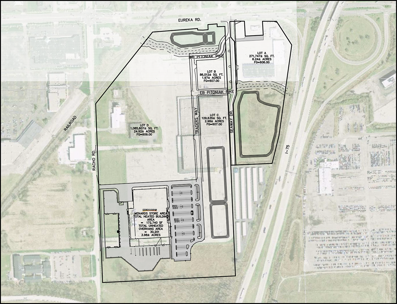 Traversed by the Frank & Poet Drain, much of the 80-acre site is located within the 100-year floodplain. Metro Consulting Associates prepared plans and obtained a permit from the Michigan Department of Environment, Great Lakes & Energy (EGLE) to raise the outparcels above the floodplain and to lower undeveloped portions of the site to provide stormwater management and counterbalance floodplain variation.